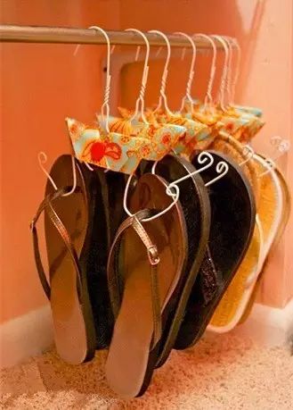 用衣架把鞋子挂在衣柜里,简单实用的方法哦!