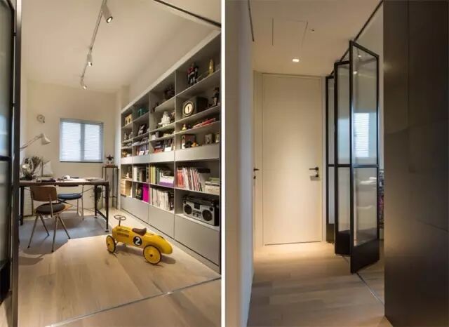 不少房子可能会出现这种情况:面积不大的夹道里,同时出现两至三扇平开门,让空间显得拥挤不堪。