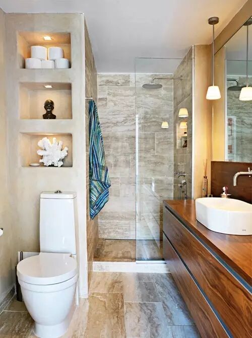 狭长的卫生间便于干湿区分,干湿分离能够减少卫生间的潮气,而干湿区可以利用推拉门进行分隔,既不占用空间,还能阻挡水汽。湿区应该加入更强大的排湿和采光系统,以此弥补其先天采光不足的缺陷。