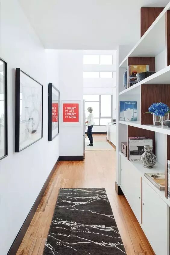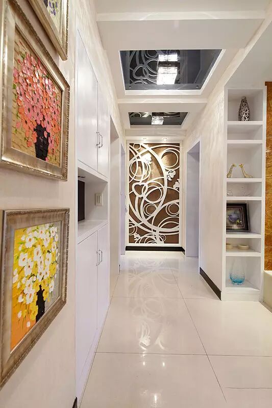 不规则空间应该根据人进门后走道流动的路线,在这个路线上对空间进行分割。对于狭长的走道来说,可以结合顶面及墙面装饰让走道成为一个独特的装饰空间,例如做成照片墙、画报墙都是比较流行的装饰方法。