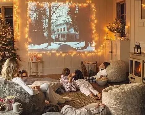 如果你偶尔还喜欢在家看看电影,那么家用投影仪就是最好的选择。画面比电视大,但是却不占地方,不用的时候可以收起来。整个客厅看上去依旧干净清爽。