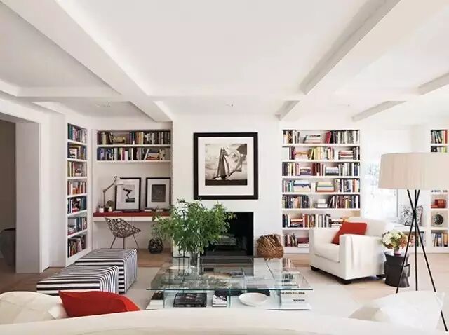 用书来代替电视机,装饰效果和功能要求全都有了。本来打算留给电视的那一面墙,用书本来代替更加美观。客厅摆满了书,还能让客人赞叹你学识渊博呢。