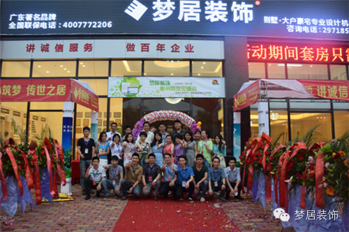 惠州装饰市场再添生力军,5月18日广东梦居装饰惠州分公司在惠州市惠城区江北伟豪领御隆重试业。