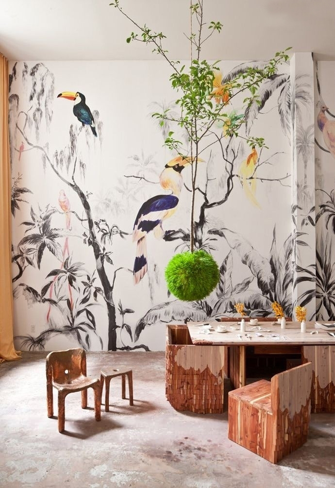 中国水墨画在这里出现,和原始自然色的桌椅相融合,安静舒适的意境油然而生。
