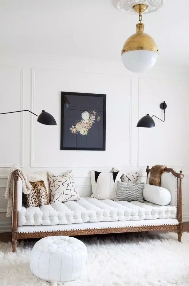 白色hold全场,黑色挂画和简单图案的抱枕成了点睛之笔。