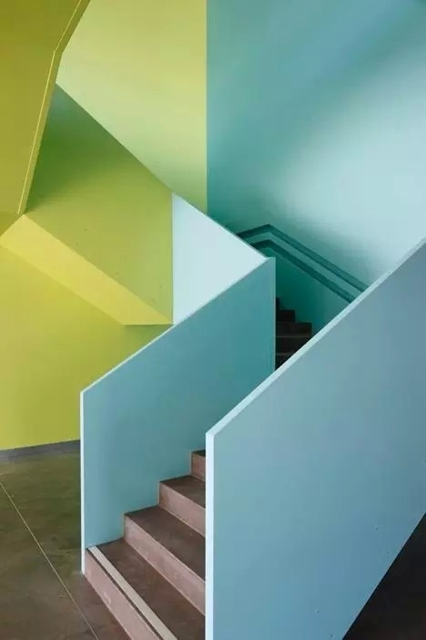 浅蓝、嫩绿色的楼梯装饰,舒展好看。你试过吗?