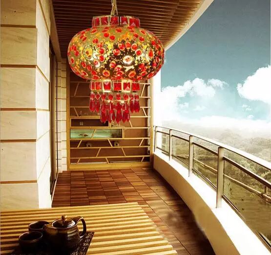 琉璃灯,因为漂亮而且部分人不喜欢餐吊的垂落下来,也不喜欢吸顶灯的简单,所以会选择琉璃灯用来安装在阳台。