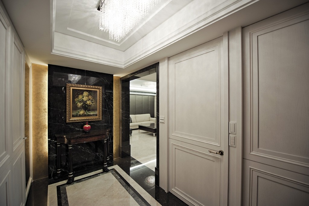 小水晶灯也是安装门厅的一大选择,虽然价位会显的高,但是却很漂亮。可以选择40CM和60CM的水晶灯安放在门厅。