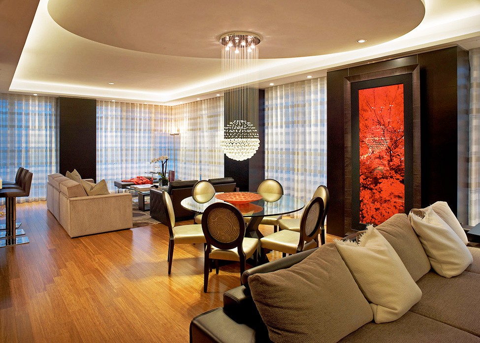 客厅稍微中型或者大的,可以放稍大一点的方形水晶灯,或者800CM到1米5的水晶吊灯都是可以的,按照自己客厅的大小。