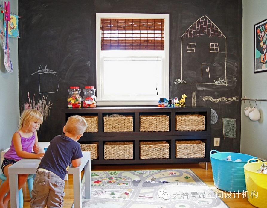 乏味的空白墙可以用黑板墙描述动态的世界。