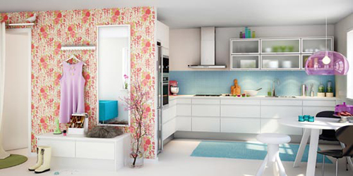 小小的房子、小小的厨房并不意味着就不能有温馨和浪漫。麻雀虽小五脏俱全,纯白的橱柜带出干净整洁,黄色和粉色就不失温暖。其实为爱人做晚餐,不在于在哪里做、哪里吃,而是在一起。