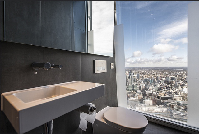 使用厕所时,转头就能看到清晰的伦敦景色:天际线、著名的椭圆摩登大厦、缓慢流动的泰晤士河……