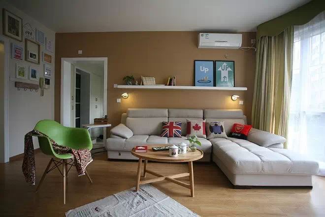 在沙发的体积很大或是两个长沙发摆在一起的情况下,矮茶几就是很好的选择,高度最好和沙发坐垫的位置持平。