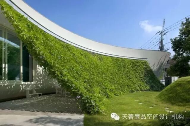 沿墙角四周种植爬山虎,常春藤、凌霄、金银花、扶芳藤等攀爬类植物,其中使用最多的爬山虎。它优点是造价低廉,但美中不足的是冬季落叶,铺绿用时长,很难四季常绿,不过可以让人们感受四季的变化。