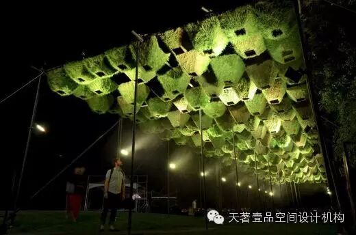 骨架+花盆:将事先绿化好的花盆嵌入骨架空格中,其优点是对地面或山崖植物均可以选用,自动浇灌,更换植物方便,适用于临时植物花卉布景,形态更加丰富。