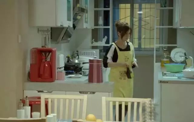 进门客厅,这里其实很简单,实木餐桌和一个原色书柜加上现代装饰油画。可能设计师在设计的时候就考虑到猫爸程序员虎妈公司主管的职业风格,一切从简化,但在其搭配上却花了不少细节功夫,这也印证了剧中猫爸虎妈的涓涓细流的爱情的生活。