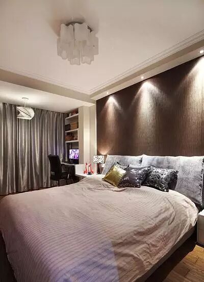 简约个性的主卧,床头规划了一个小工作区,有时候晚上有些工作要处理,非常便利。