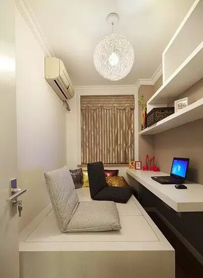 非常迷你的一间小书房,原本是更衣室改造的,做了两个大柜子用来收纳。买了两个懒人沙发,无聊的时候在这上上网,或者躺着看会书,特别惬意。