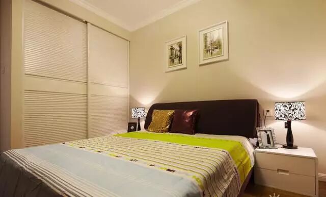 次卧面积较小,考虑到收纳空间,做了一个大衣柜,移门很便利。