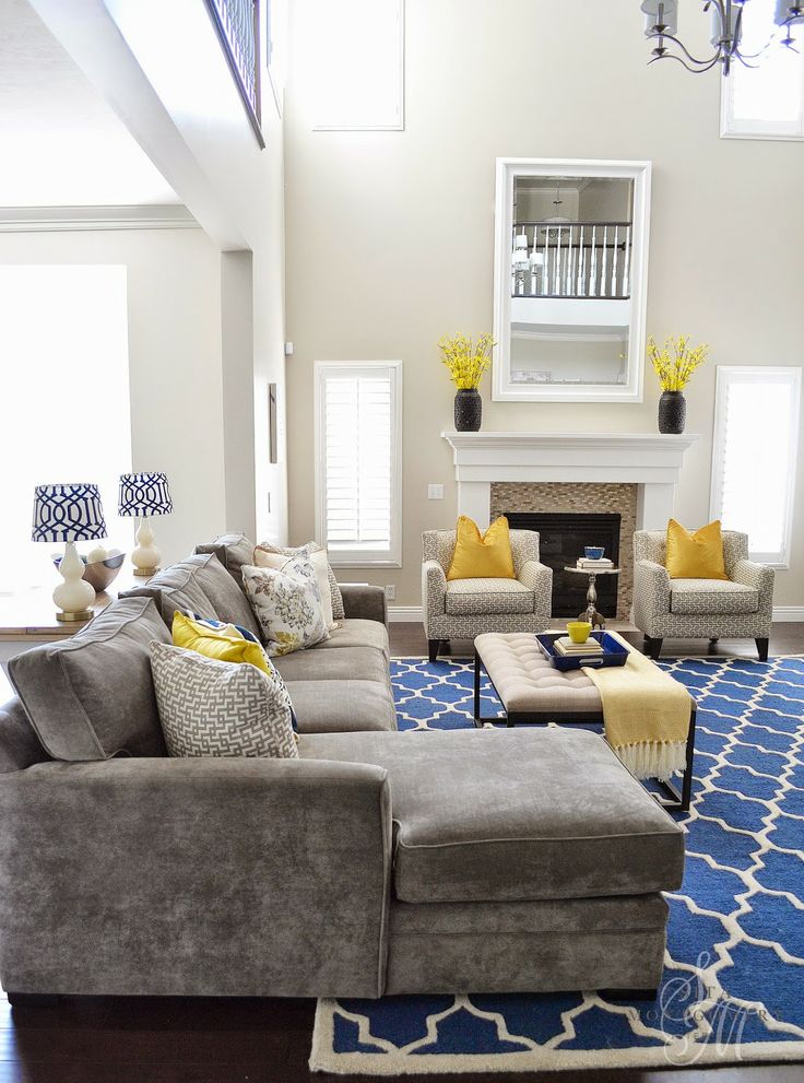 看到这个房间的蓝色了吧?灰色可以使色彩流行起来,如让黑色生动,让白色更清新干净。所以,对于灰色沙发,你可以用任何色彩的抱枕来做配件。潮流趋势来来去去,但灰色是不变的潮流色。