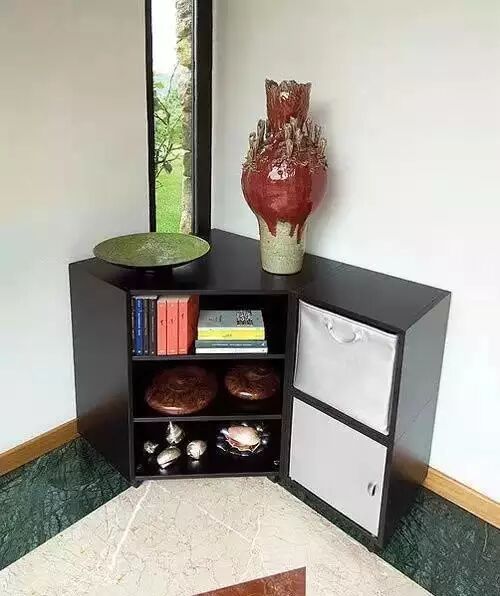 ▼ 一个转角的矮柜,能够提供收纳和放置摆设品的作用。
