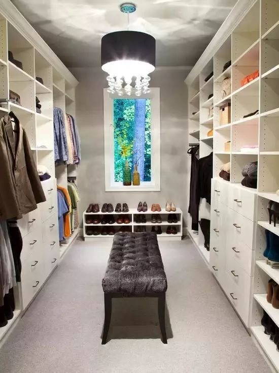 大概有这几种选择“L”形衣帽间占据着空间的两面墙壁,“U”形衣帽间实现最大的存储量。而“I”形衣帽间相对灵活再小的空间也不怕。
