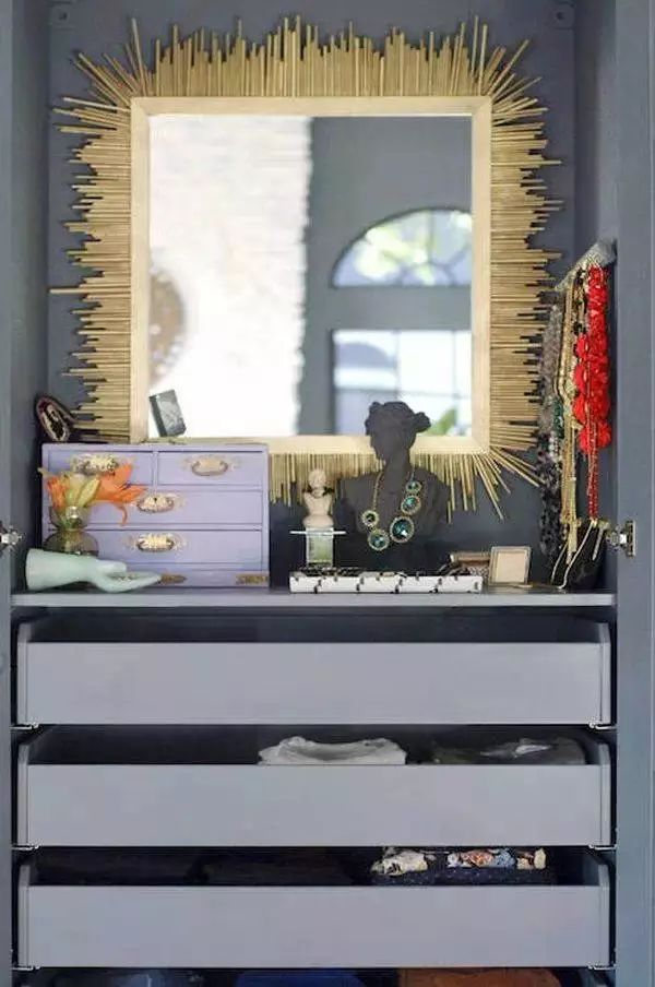 给你衣柜内置或周围空间升级,会有意想不到的效果哦。比如便携式的镜子、专用的照 明、凳子和梯子、备用的抽屉都是迫切需要的。