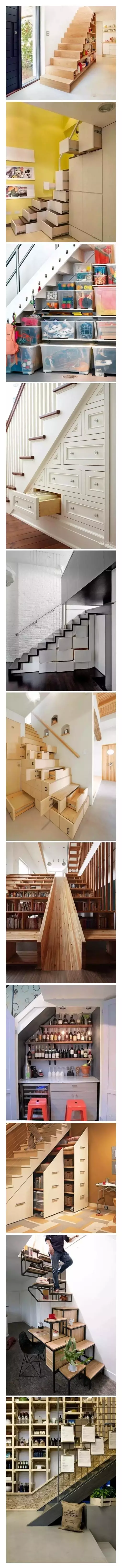 关于楼梯空间的妙用有很多案例可以参考的,下面这几种简直把楼梯空间的收纳功能利用到极致了。如果你家有楼梯的话,千万别浪费了楼梯下的空间,也可以这么做。