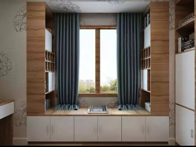 飘窗下面可以是抽屉可以是推拉门或者对开门,设计多样,满足多种需求