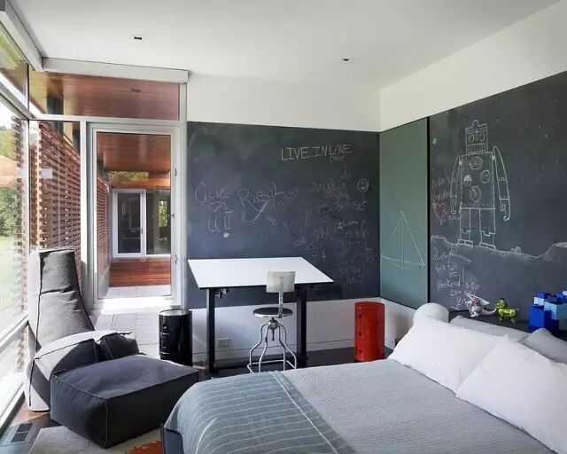 有些人认为,把黑板墙安装在在孩子的房间里,绝对是一个脑抽的行为,因为那些小家伙肯定会在墙上乱涂乱画。