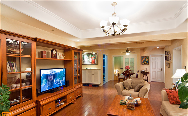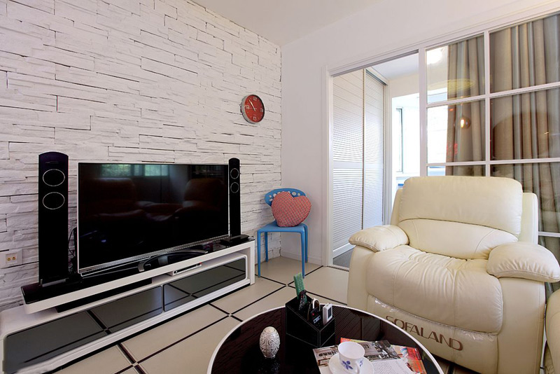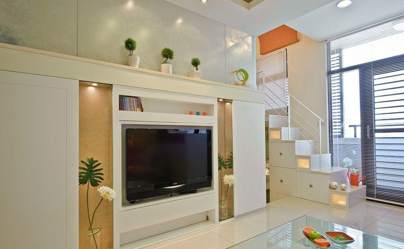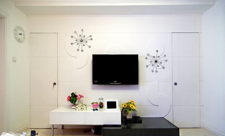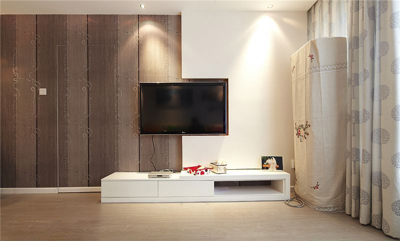 这面墙是比较简洁的,配合电视柜和一个储物柜以及边上的装饰品