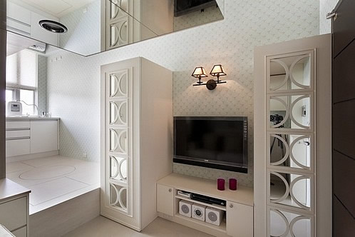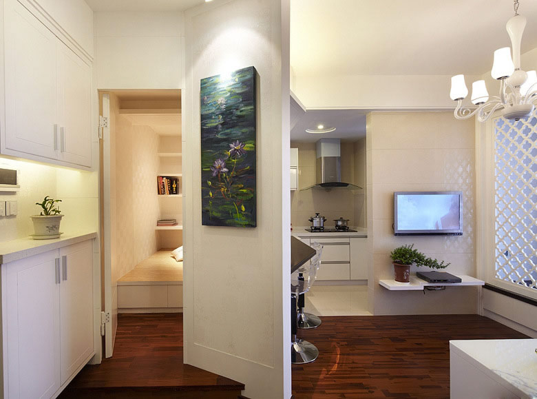 看到那个隐形门没有?电视放置的位置也很有趣,有点太极的味道