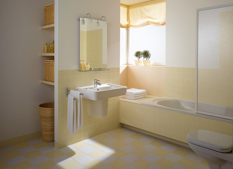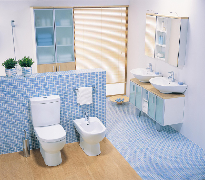 最基本的布置方法:是从卫浴间门口开始,由低到高逐渐深入。