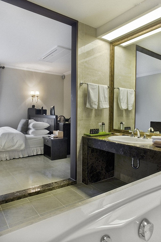 如果你还没前卫到这种程度,可选择只打掉卫浴间与客厅或卧室一半墙面,墙基还留有一米的高度,打掉的部分装上装饰性的磨砂玻璃。