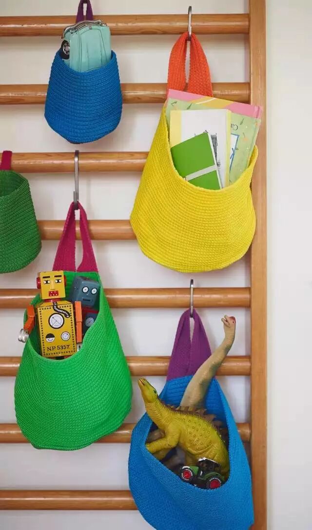 有了孩子,就更得花些心思了,用这样的袋子把宝宝平时的东西进行归纳,既保持家里整洁,又有趣好玩。