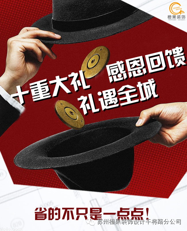 年终大庆,全城瞩目,史上装修让利最高级别--苏州橙果装饰设计集团为感谢苏州广大消费者多年来的支持与厚爱,将于12月28日在相门地铁站3号出口(橙果家居体验馆),举办年终让利大收官活动,此次橙果装饰将推出10重豪礼,万元让利回馈消费者,望广大装修业主抓住本次机会,畅享2014装修最劲爆的优惠。