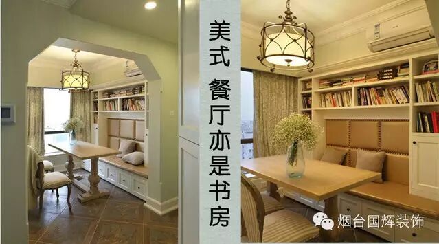 餐厅亦是书房,一边做的卡座+书架,一边方便走路,放了两把椅子。让吃饭也成为一种享受,在书香的氛围中,看看外边的风景,享用美食~餐厅软包卡座下面加了抽屉可以储物哦。