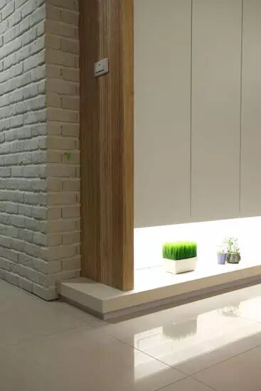 梧桐木包覆门框,隐藏一个鞋柜空间,让机能与美学完美融合。