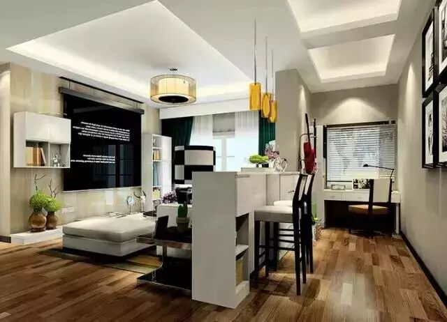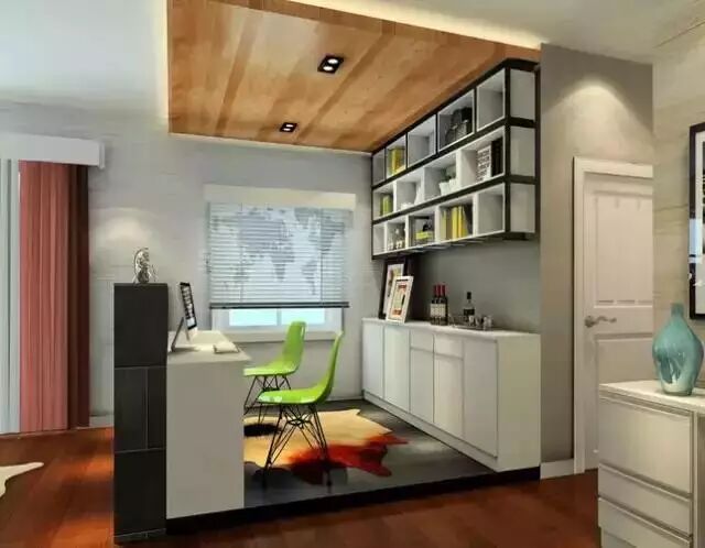 3.地台硬装凸显角落空间的独立和层次,再用简约的家具填充,开放式的客厅书房,轻奢又小资。