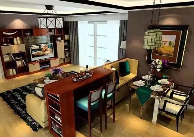 6.吧台隔出的区域,相当于一间多功能书房,与客厅隔而不断,可以一边品酒一边用投影屏看电影,在家的一大乐事。