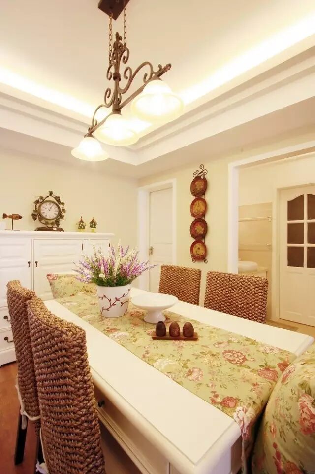 5.▲ 餐厅白色田园风家具配上藤制餐椅