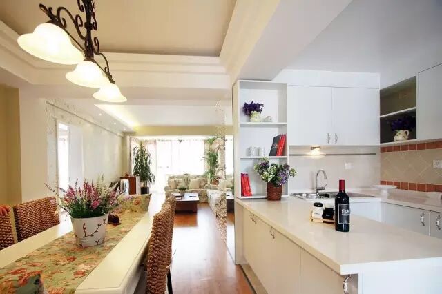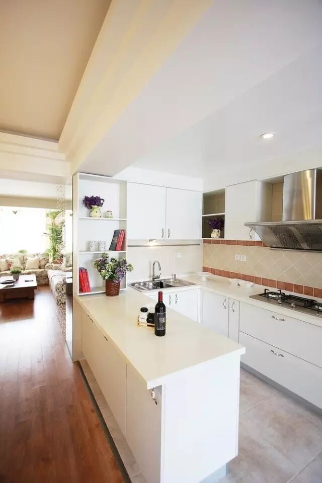 7.▲ 白色橱柜和餐厅形成天然隔断