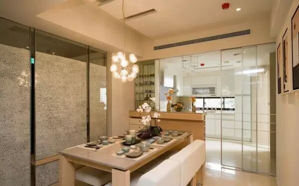 开启原来封闭的隔阂,并以功能性的吧台来做为空间的界定,创造适合购屋族群的生活型态。
