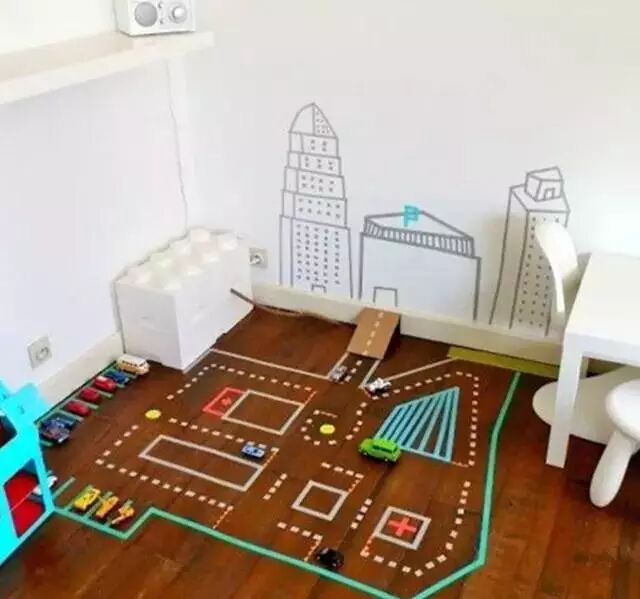 如果没有大HOUSE让孩子尽情奔跑痛快玩耍,那就利用家中每一个墙面吧。很多家长抱怨孩子在白白的墙上乱画,那干嘛不直接给他一块黑板自在涂鸦。为了给孩子一种有趣的居家游戏,可以将墙面图案与地面做个巧妙结合的小设计。国外很多有男孩的家庭,还会弄一面攀岩墙,锻炼孩子的胆识与勇气。另外墙面也是收纳的好帮手,做一个杂志架或者玩具箱,随手取玩,随手整理,好习惯要从小培养。