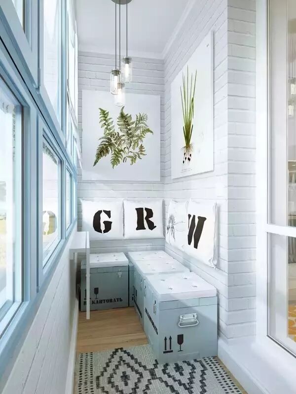 厨房外一个狭窄的走廊配有天蓝军团盒座椅,有舒适的壁挂式靠垫和饮品等,很小的壁挂式垂直空间的植物印花,表现了“成长”-是设计师自嘲的异想天开的创意。