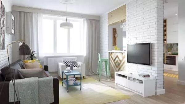 在莫斯科一个小的,45平方米,几乎是正方形的家。俄罗斯设计师经过创造性的设计,以最大限度地利用有限的空间来布置室内。