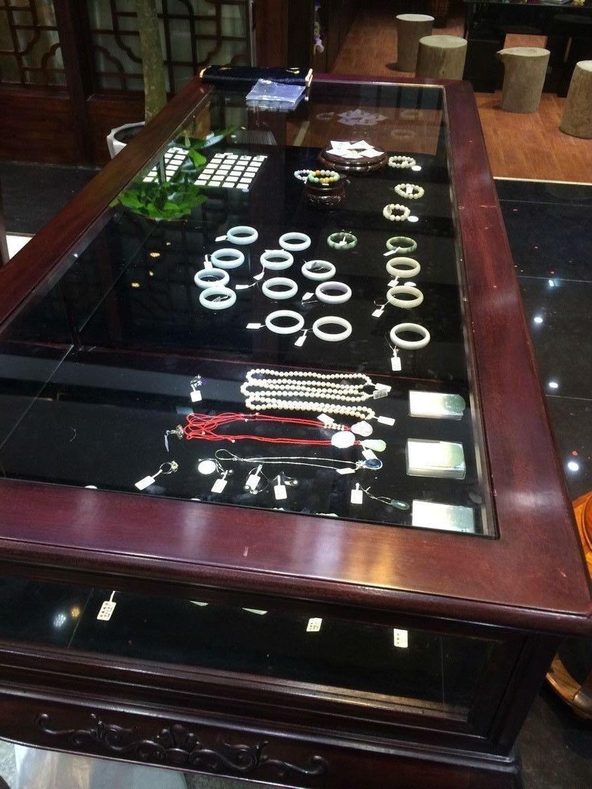 玉器翡翠的图案都是中国几千年文化的浓缩,古色古香的玉器店用深色木纹装饰,这样充分展示了古典与自然的完美结合。