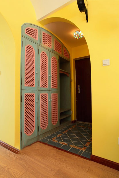 空间有限可在鞋柜设计上动脑筋,比如这样