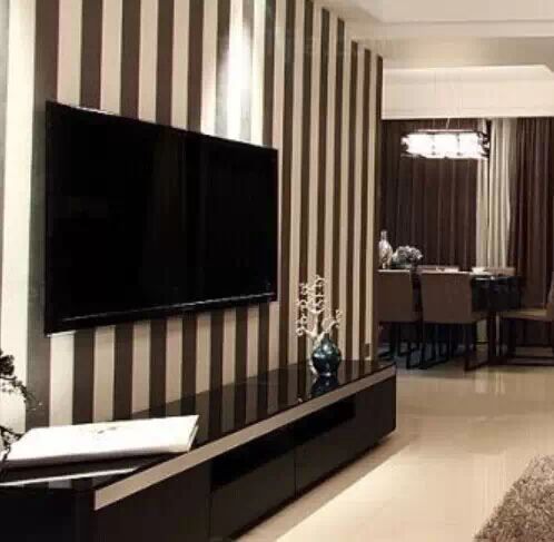 3.黑白竖条纹相间背景墙,时尚现代。