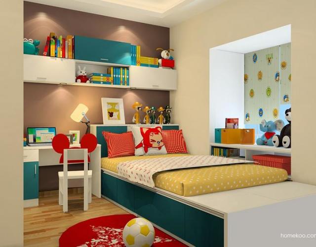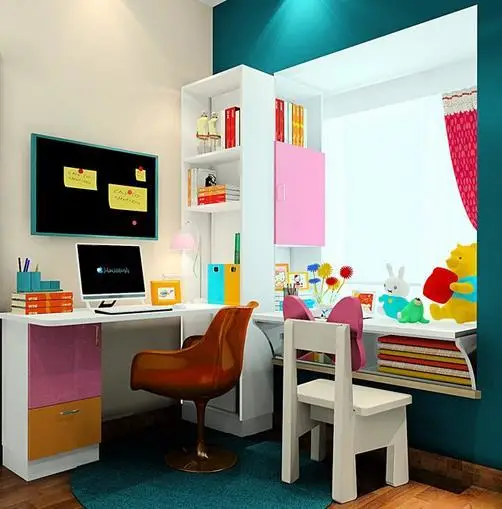 两个孩子书桌不够用?在飘窗位打造一个学习区域就可以了。整个布置区域正好形成直角,两个宝贝都能安心做作业,互不干扰。